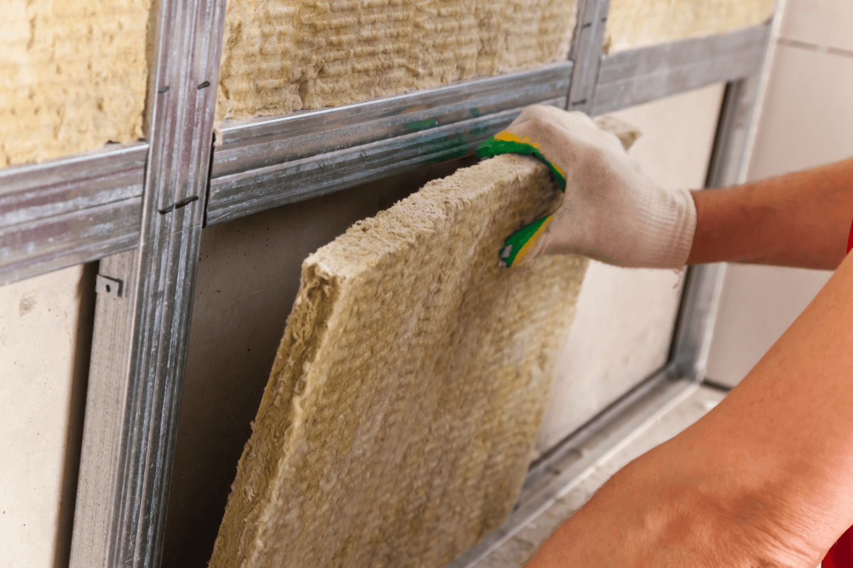 Звукоизоляция внутренних стен и перегородок. Используются многослойные конструкции: к стене крепится металлический или деревянный каркас, между его элементами закладываются звукопоглощающие плиты, например, из каменной ваты. Между ними не должно оставаться пустот и зазоров. Места соприкосновения направляющих профилей со стенами, полом и потолком дополнительно изолируются уплотнительной лентой — это защищает конструкцию от структурного шума (в частности, вибраций).