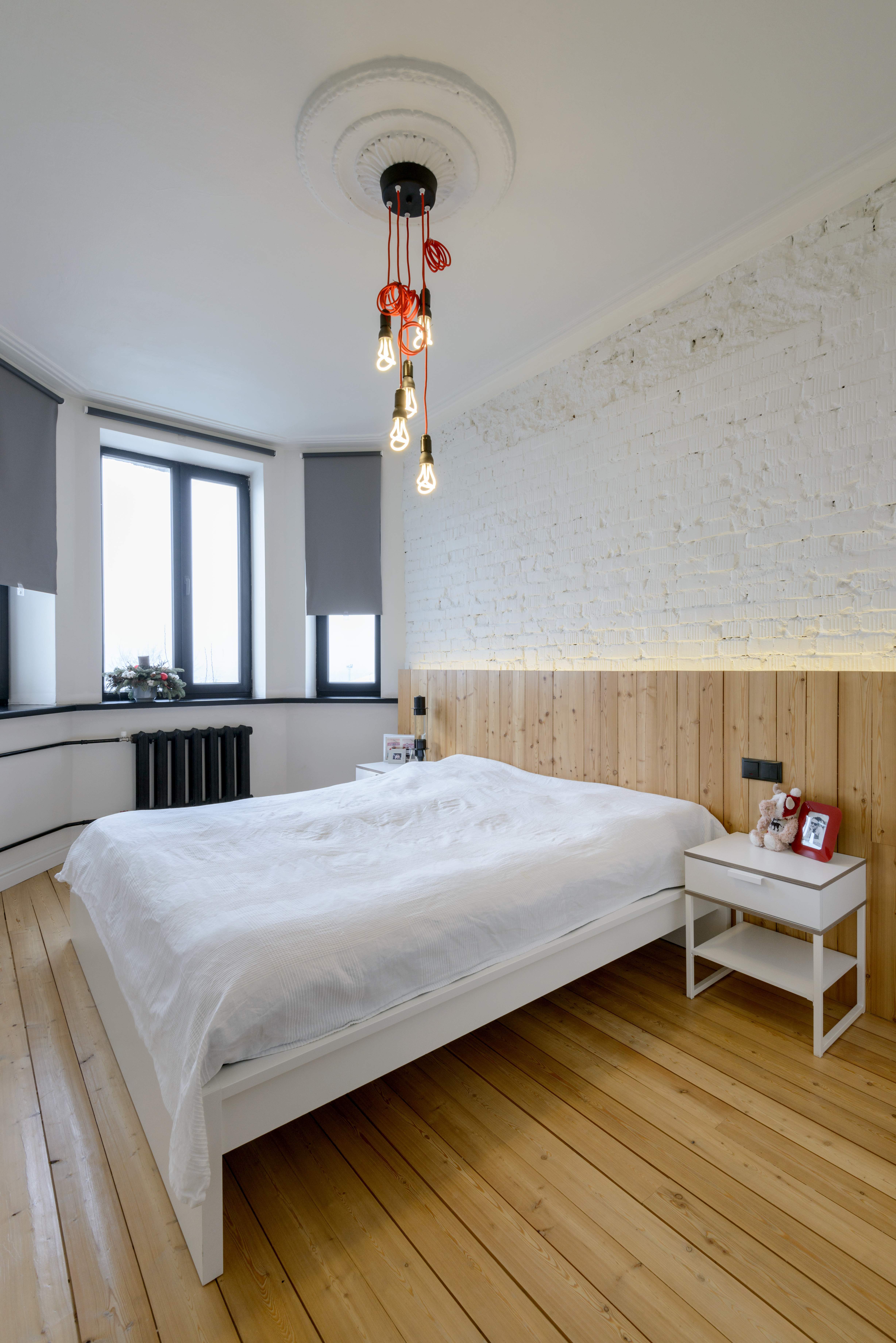 Лофты любят естественный свет, так что никаких тюлевых занавесок и сложных многоярусных гардин. Можно использовать жалюзи, однотонные роликовые шторы или монолитные портьеры из грубоватого текстиля простых оттенков.
