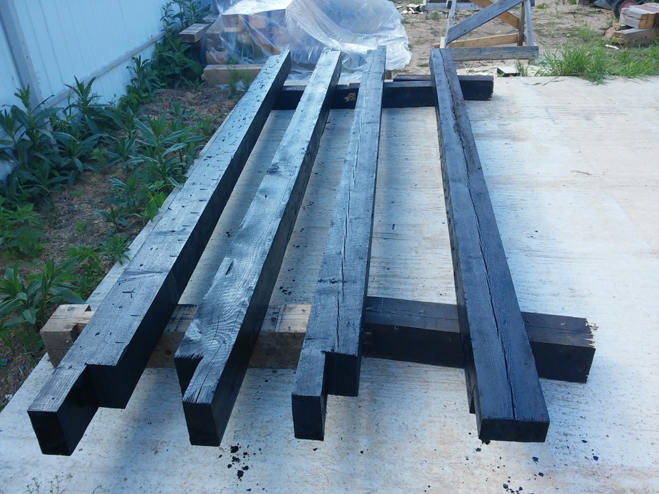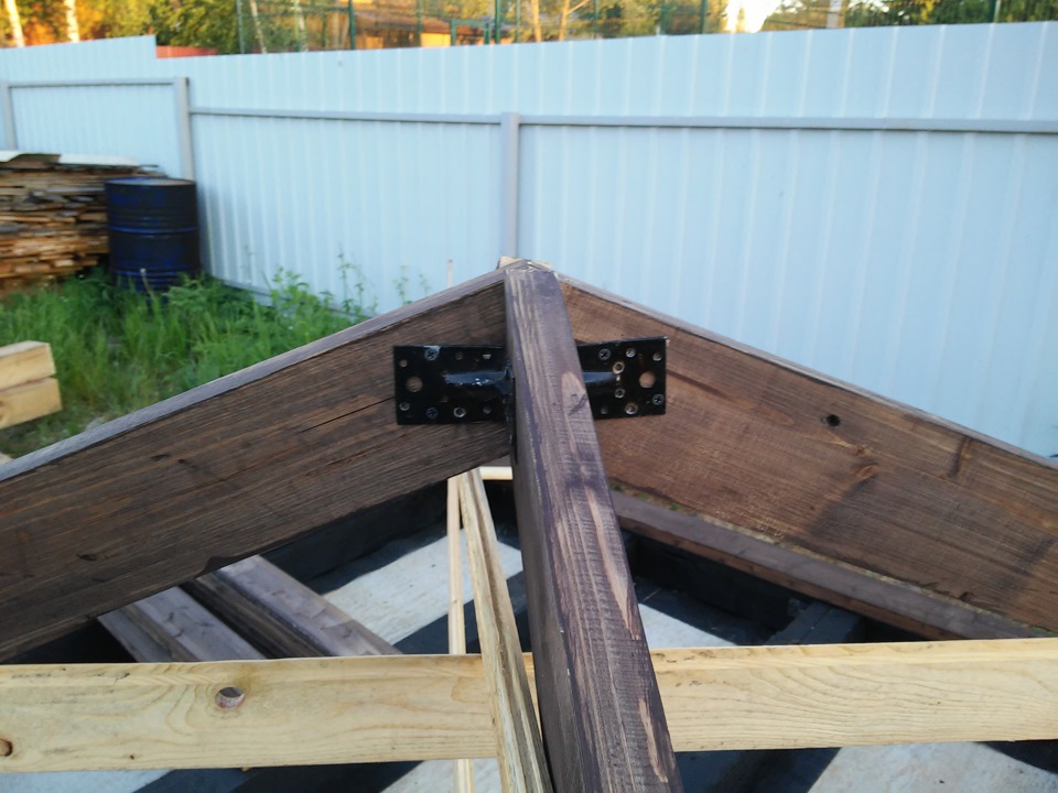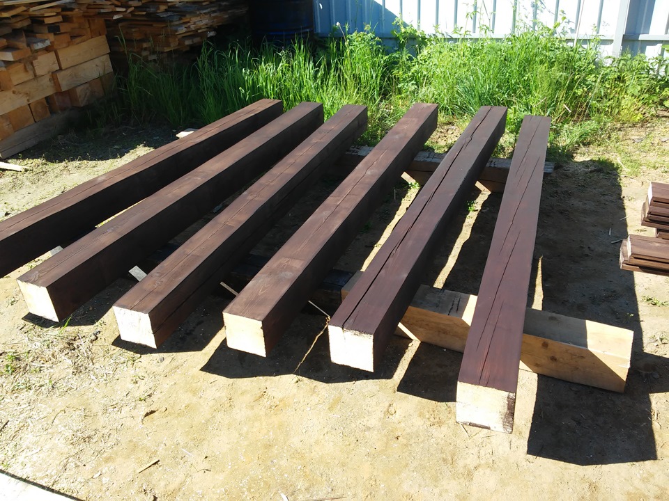 Итак процесс пошел. Так как я в предыдущие выхи заготовил материалы для стропильной системы, их осталось покрасить и начать монитровать.
