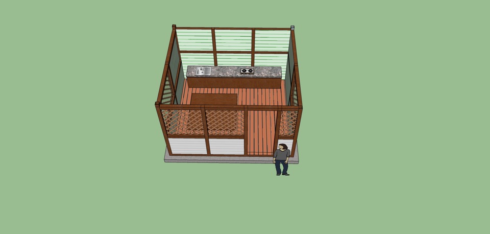 Изначально проект задумывался с печью-мангало и тд, но в последствии прикинув что места внутри становится совсем мало, решили обойтись отдельно «зоной барбекю» или просто мангальчиком.