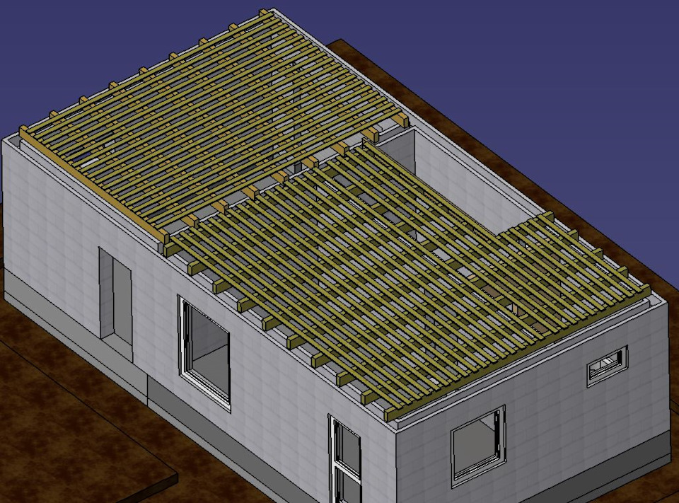 После установки обрешетки все металлические уголки крепления к армопоясу были сняты, дабы не мешали класть последующие ряды газоблоков.