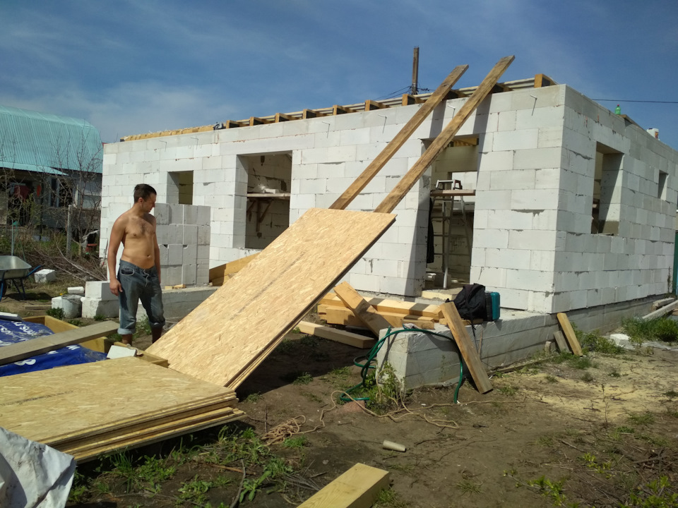 Ну и в целом ничего страшного и не случилось. Весной я обнаружил внутри дома огромные сугробы с намерзшим на полу льдом, первый ряд газоблока выглядел местами сырым. Просто выгреб снег и лед из дома и с первыми сухими деньками в середине апреля начал стройку.
