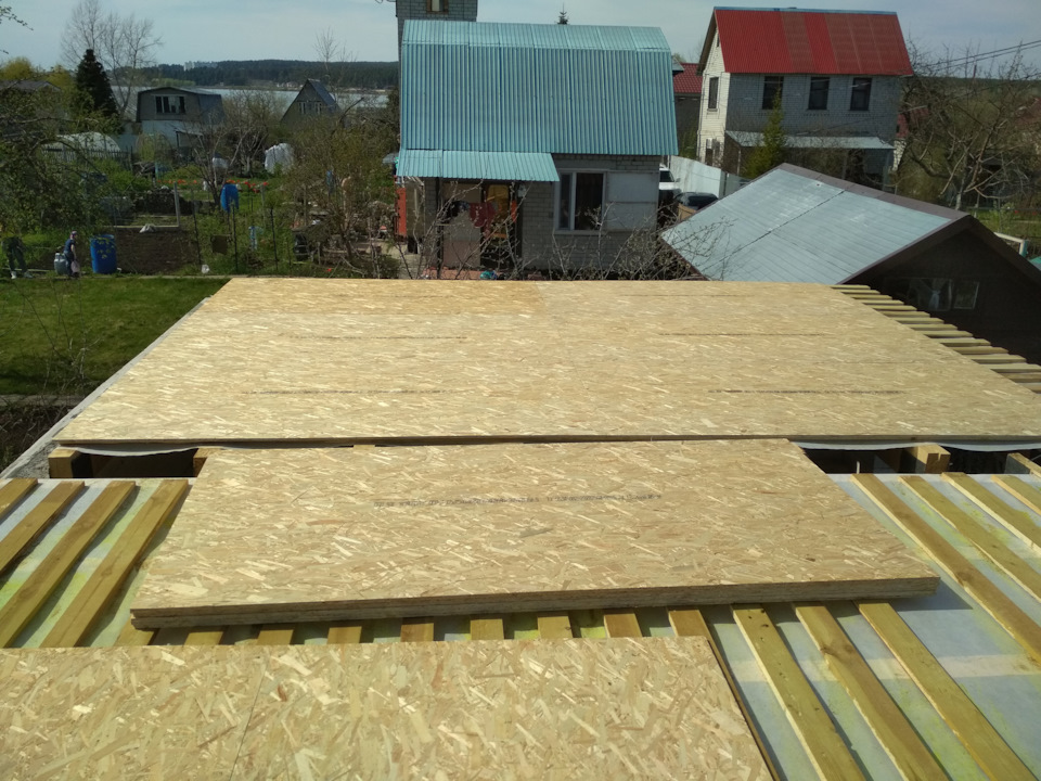 Перекрытие у меня деревянное : балки 100*200, обрешетка 25*100, в качестве временного пола по обрешетке решил брать ОСП 12мм.